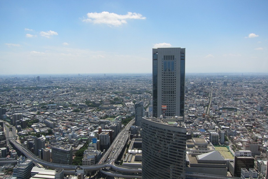 That tiny looking cloud to the right of the building is actually Mt. Fuji!