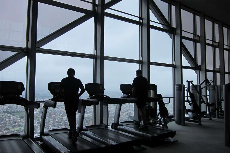 Working out on the 45th floor feels like you’re working out at the top of the world. I managed to catch a swim (during an aquaerobics class, à la Lost in Translation), and we even caught a yoga class, which was entirely in Japanese.