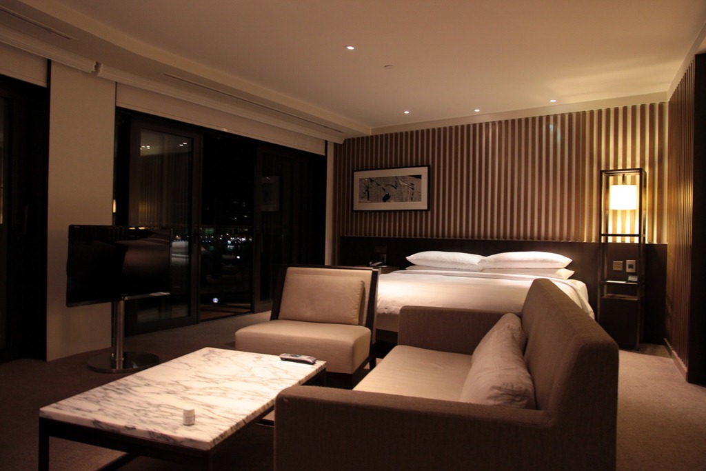 While the room was nice, the bathroom was excellent, featuring a Japanese Toto toilet with a separate sink, his and her sinks in the main bathroom, an awesome waterfall shower, and a bathtub for two.