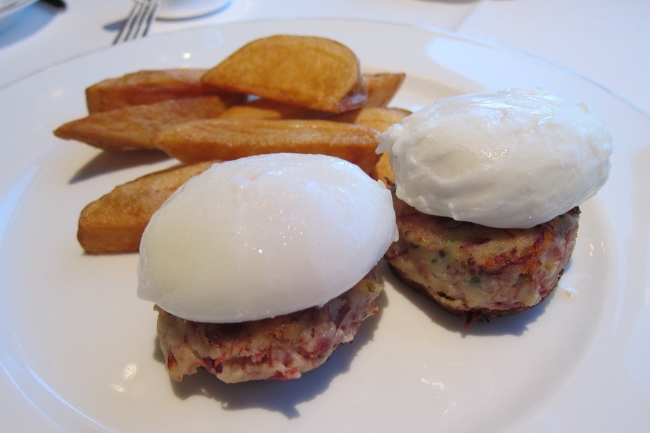 The corned beef hash, on the other hand, tasted like it was made from scratch, and was mind-blowingly good. The chips were excellently seasoned, and the poached eggs were cooked to perfection.