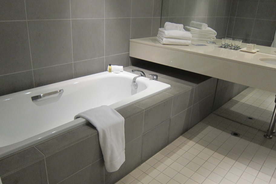 The bathroom had a shower and a bathtub, and the full suite of the usual Hilton amenities.