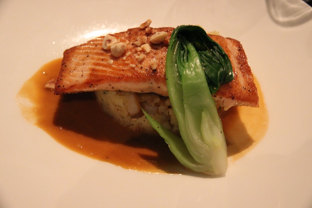 The Akorea Harbour salmon came with prawns, crushed potatoes and lemon, hazelnut butter, and baby bok choy. It was fantastic.