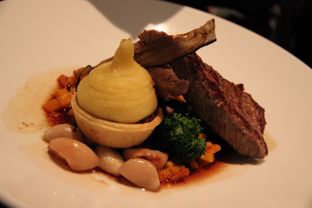The lamb was outstanding, and came with a small lamb neck New Zealand pie, topped with mashed potatoes. It was also accompanied by diced pieces of roasted pumpkins, broccollini, and garlic confit. So good.