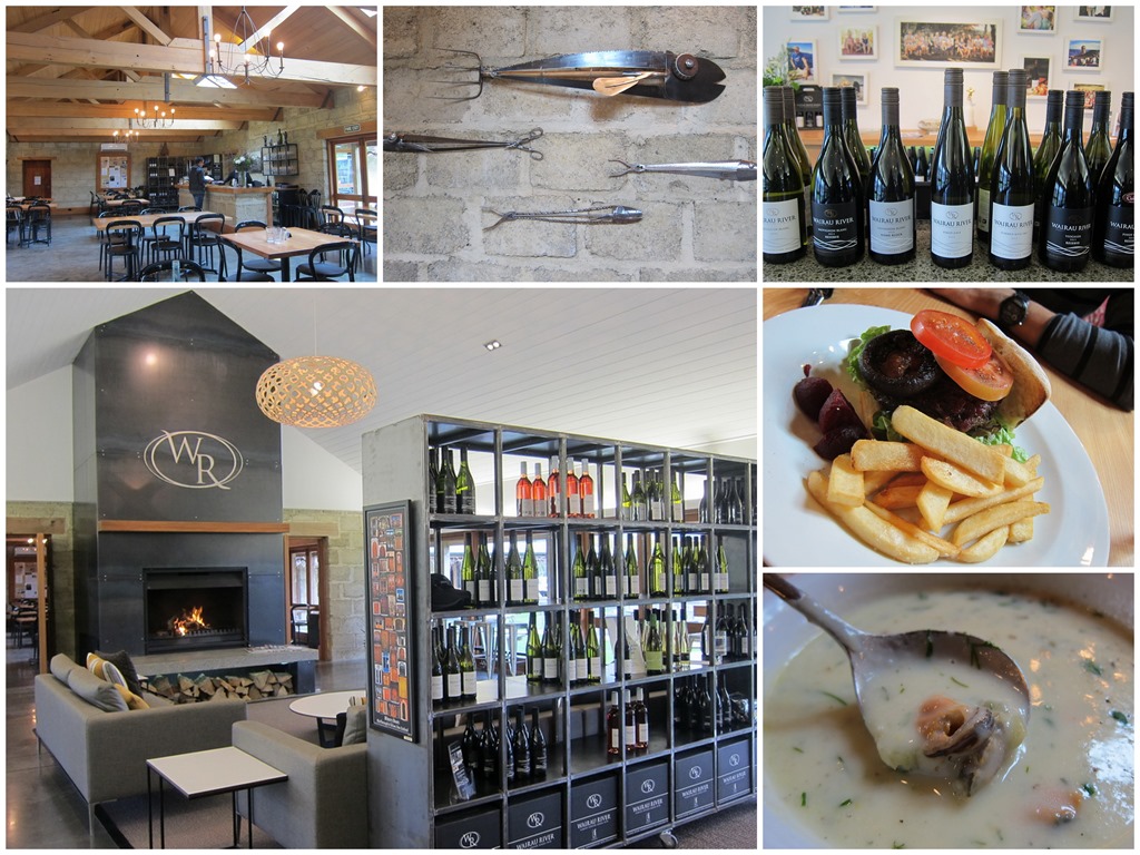 I had a delicious green lipped mussel soup, and Mr. Selfish enjoyed a tasty burger. The Sauvignon Blanc was quite tropical at Wairu River but we refrained from buying any since it was the first winery we visited.