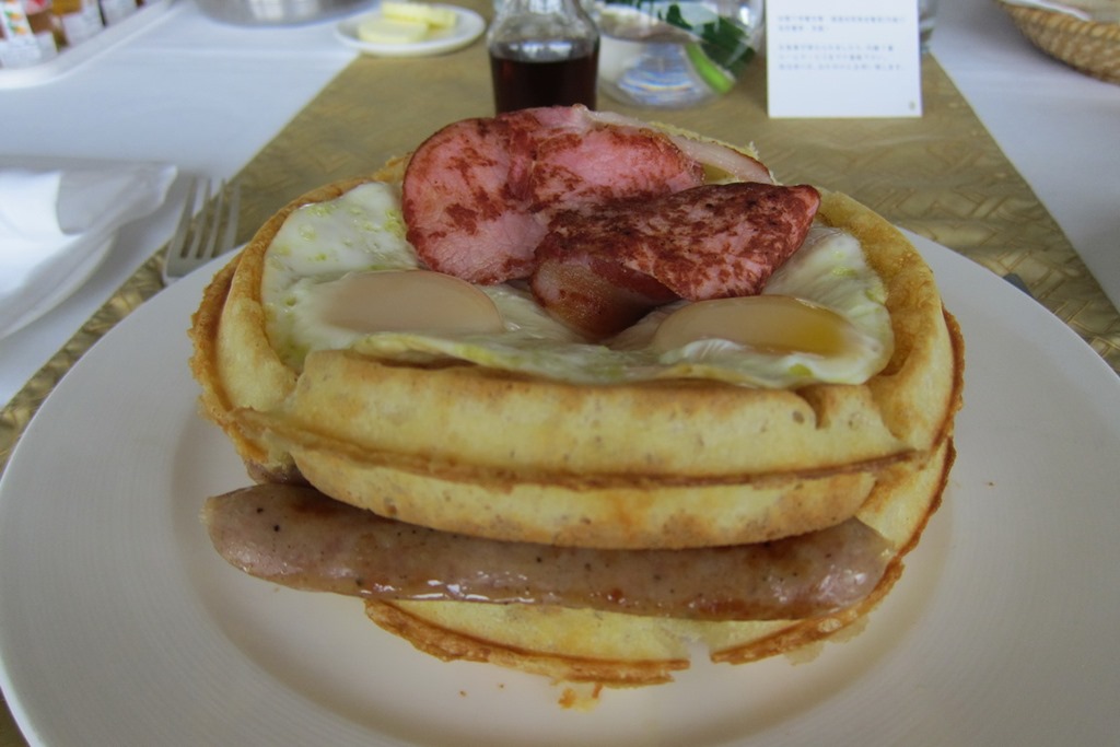 Mrs. Selfish ordered the British style hash, while I ordered the American platter – which consisted of 3 waffles, bacon, sausage, and eggs. With a side order of coffee, the total came to ~$50 after taxes and room service fees. Yikes!