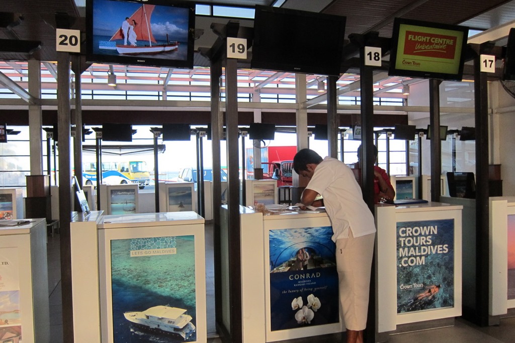 The Male airport has a large section dedicated to small hotel counters, which is something I hadn’t really seen before. We later learned that there are something like 108 different hotel islands, which explained their massive presence in the Male airport. Fortunately, finding the counter for the Conrad is pretty easy.