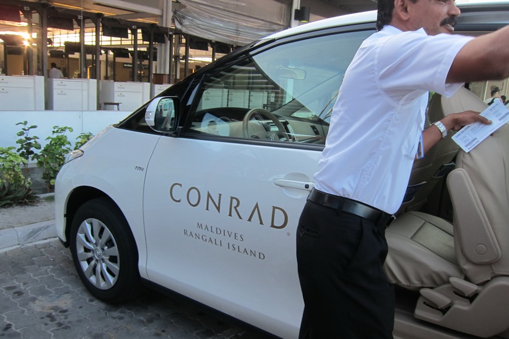 Transportation to and from the hotel was free, fast, and efficient. The next morning we were dropped back at the airport to the welcome counter for the Conrad Rangali.