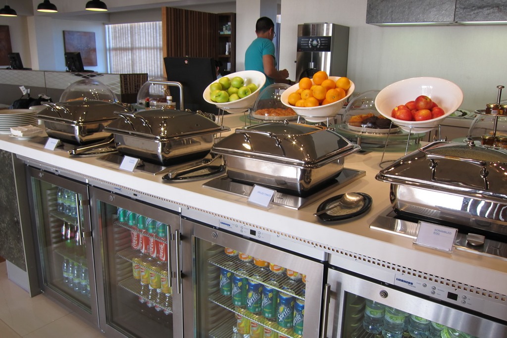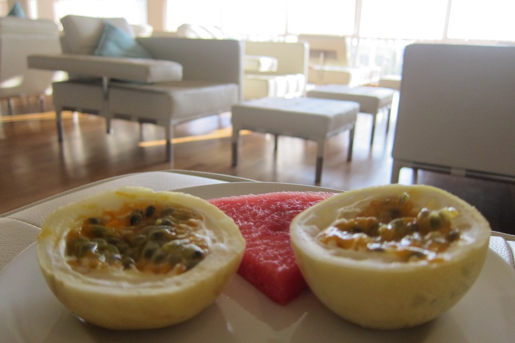 The lounge is a pretty slick, relatively new operation, with tons of food options and even more seats. They also offered free shoulder & back massages (for 10 minutes). Unfortunately, Mrs. Selfish and I arrived pretty close to the time of our flight, so we missed out on the free massage. Bummer.