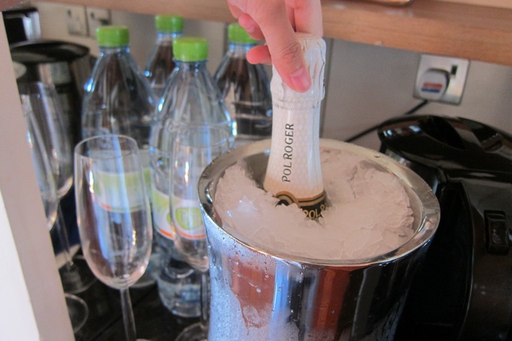 As a gold member, Mrs. Selfish and I received a box of chocolates and a half bottle of champagne. The room also came with two bottles of water which were restocked in the morning and the evening.