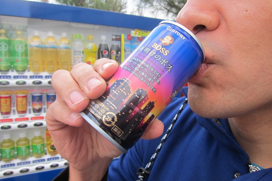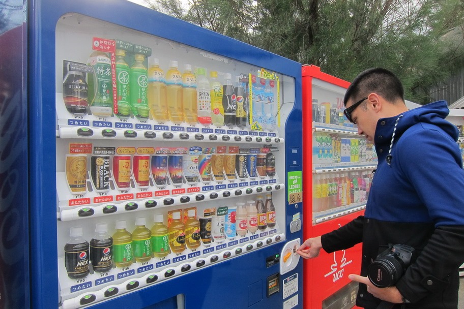 While you’re enjoying your rice ball snack, you can also buy hot or cold coffee from a vending machine.