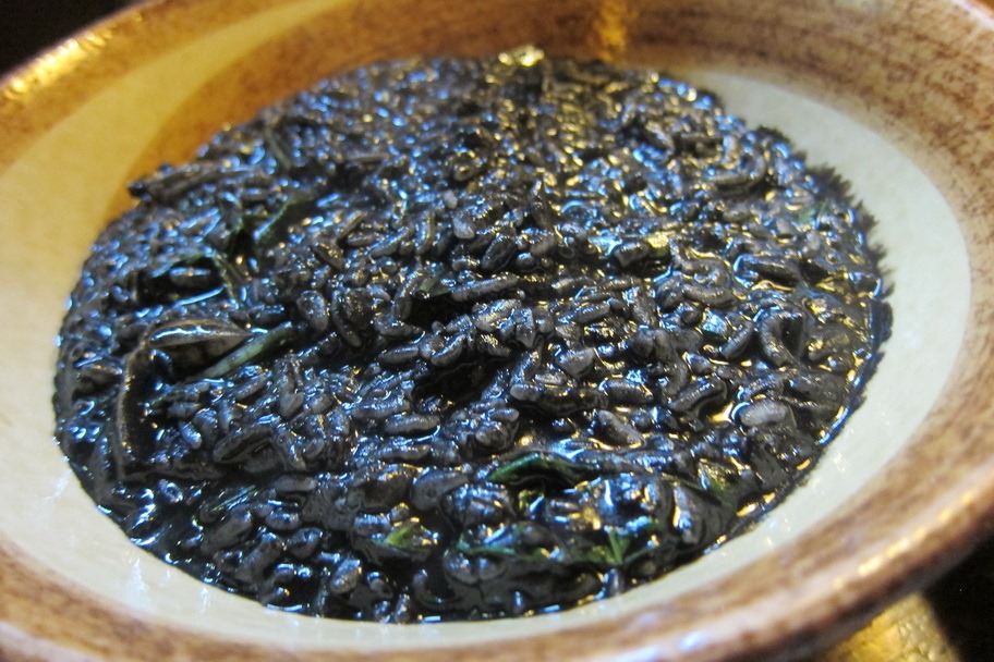 Mr. Selfish and I sat at the bar and watched the ladies cook. We ordered the pork belly, chanpuru (stir-fry wheat gluten with spam), and squid ink rice.