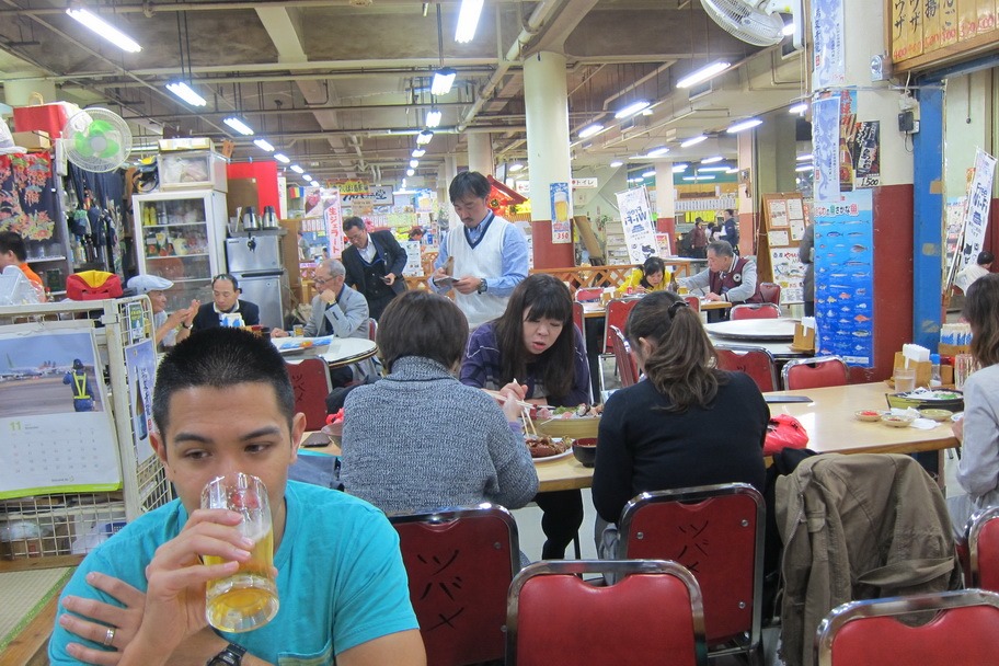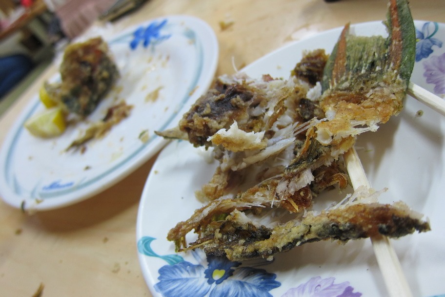 Our market vendor brought our fish upstairs to a restaurant and instructed them to fry it up for us. Although the sashimi was only average, the fish was fresh and yummy. It was a white fish, and I had a fun time picking through the bones. I’m not sure what kind of fish it was, but it was tasty!