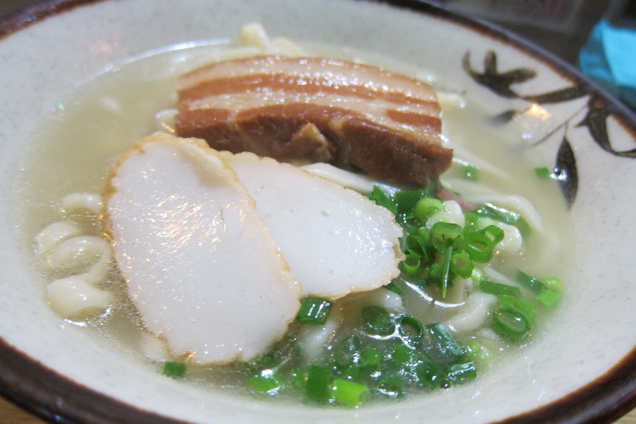 Mr. Selfish and I have recently become obsessed with ramen. When I learned that Okinawa had its own type of soba, I knew we had to try it. Okinawan soba is different from the buckwheat noodles served in the rest of Japan. It is made from wheat and is similar in thickness to udon noodles. Also, the broth is more similar to ramen broth, and it is oftentimes served with pork belly.