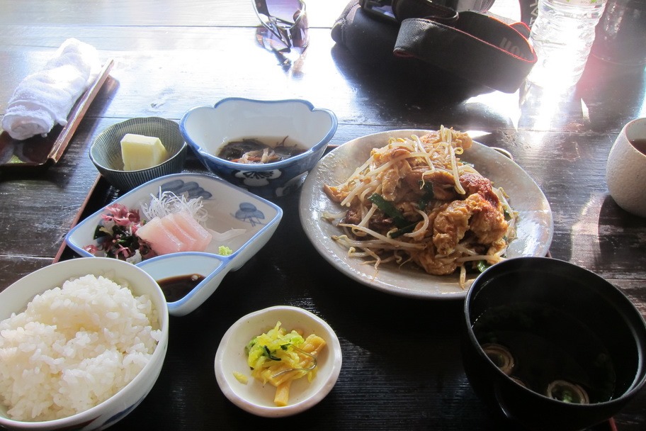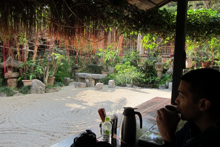 Finally, Mr. Selfish and I visited Ashibiuna (2−13 Shuritonokuracho, Naha), which is a good Okinawan restaurant near Shuri Castle. You can either eat inside the restaurant or sit outside, which opens up to a rock garden. Mr. Selfish and I opted for the outdoor seating.