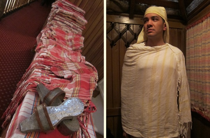 The left photo is the clothes they have on premises for the bath. The right photo is the towels that you wear after you dry off.