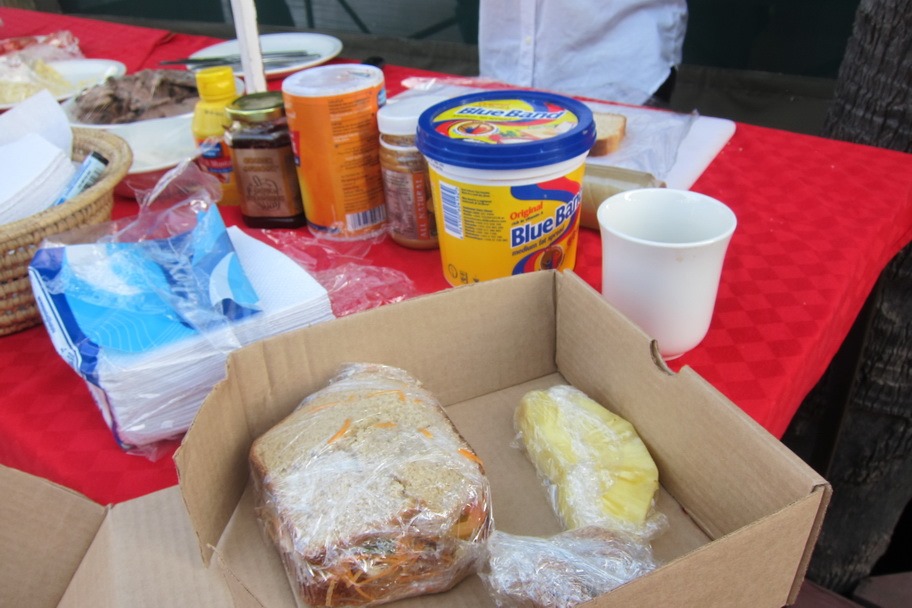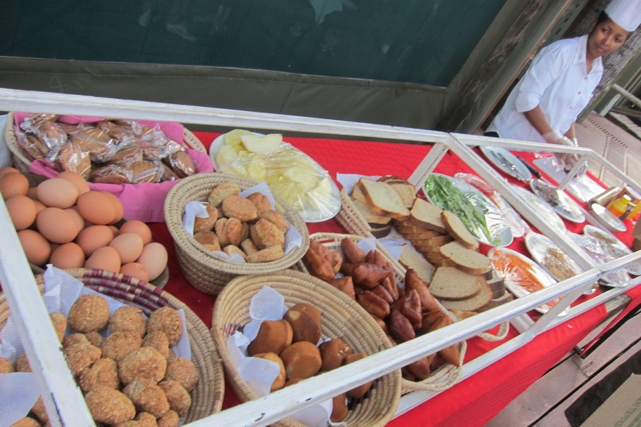 Some of the lodges do more elaborate meals like fried chicken, or pizza, but the Maramboi Tented Camp was keeping it simple with sandwiches, hard boiled eggs, nuts, fruit, and local baked good.