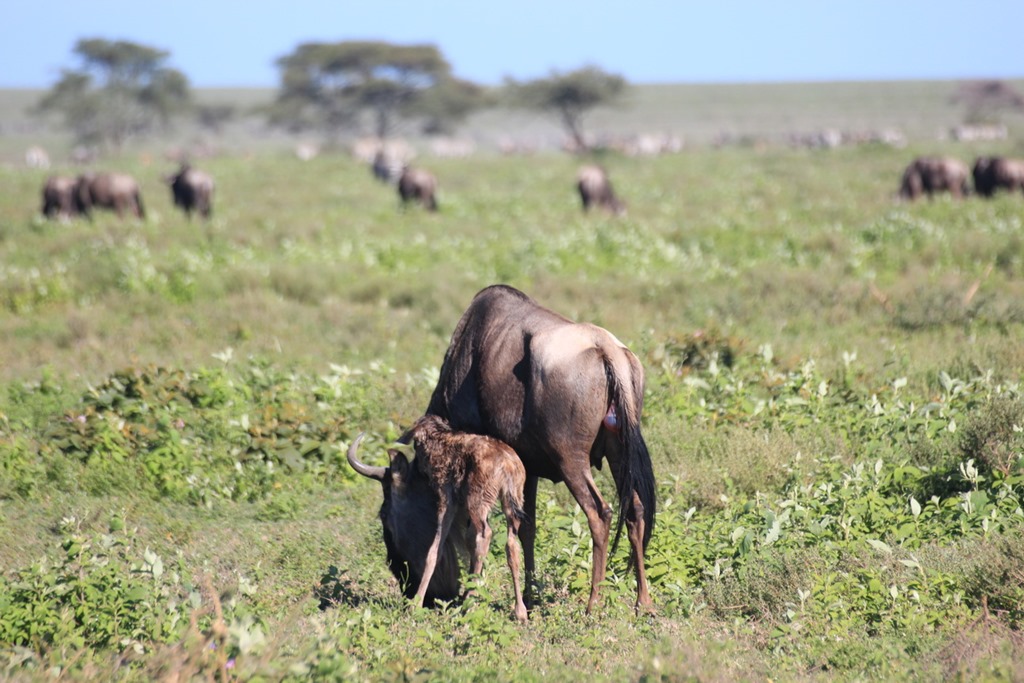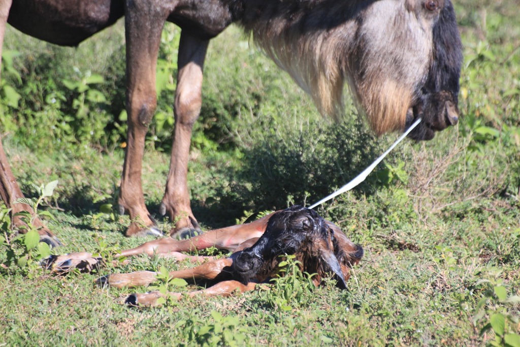We slowly stalked the pregnant wildebeest in the Landrover (no easy task given its immense size). Though she was a little leery of us at first, she eventually gave birth.