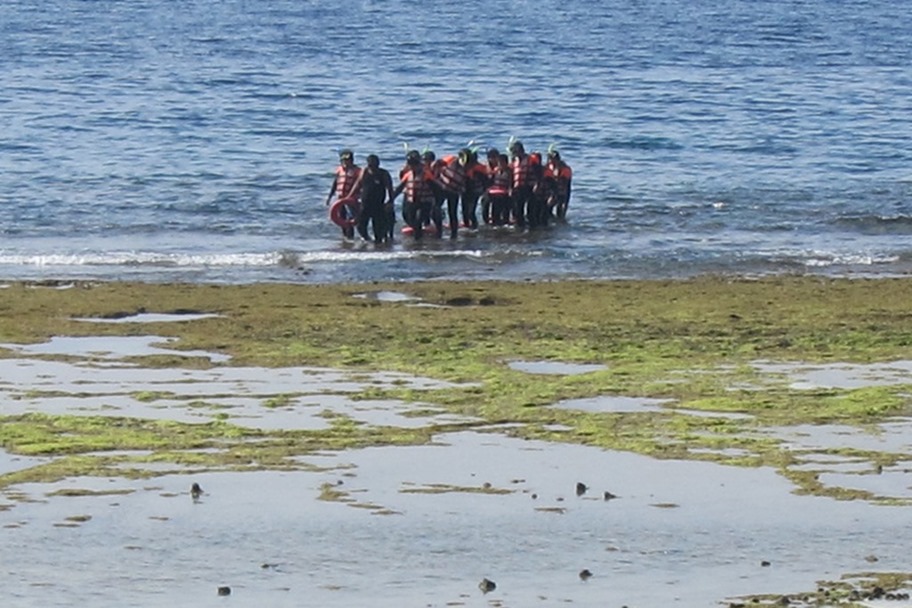 What was going on wasn’t apparent to us at first, but we later determined that snorkeling is a led expedition. And by led, I mean you’re basically given snorkel gear and a mandatory life ring and you swim very closely to a other dozen people. Say what?!
