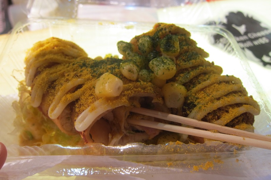 I’ve seen these potato coils in night markets all over the world, but have never been man enough to try one. From the looks of it they use a machine to slice a potato into one long potato-coil, before deep frying this bad boy. You’re given a choice of seasoning, and in this case I opted for seaweed (c’mon, you’re in Asia!) and paprika.