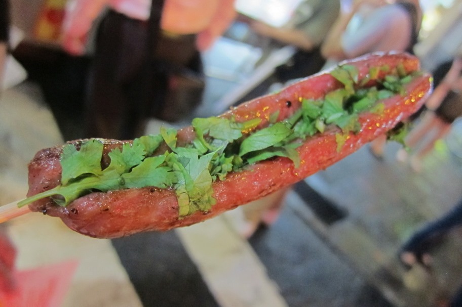 Unfortunately, this did not appear to be the place. Instead, I got a sweet Taiwanese sausage filled with cilantro and lightly grilled. Delicious, but not exactly what we were looking for.