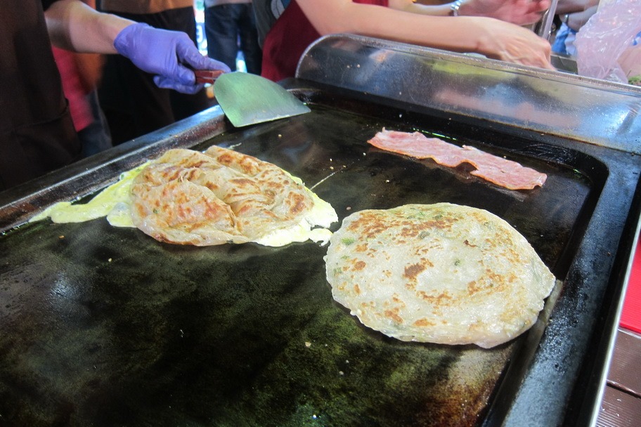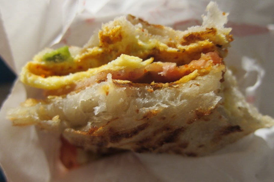 We opted for the ham and egg scallion pancake. If you’ve never had one of these bad boys before it has the textural consistency of roti, or an Indian paratha. It’s flaky, savory, and slightly chewy.