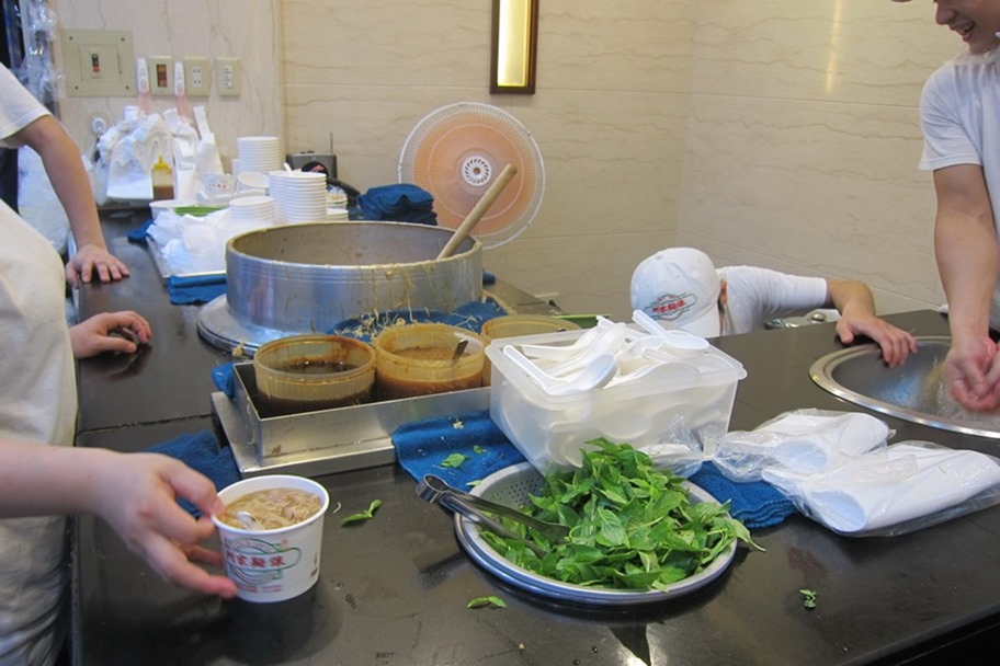 Located close to the Ximen Subway station at No. 15 Taoyuan Street, Zhongzheng, the Tao Yuan Street Beef Noodle had even less frills. The restaurant is a sparsely decorated building with people making noodles out front – I don’t even recall getting a menu, we just pointed!
