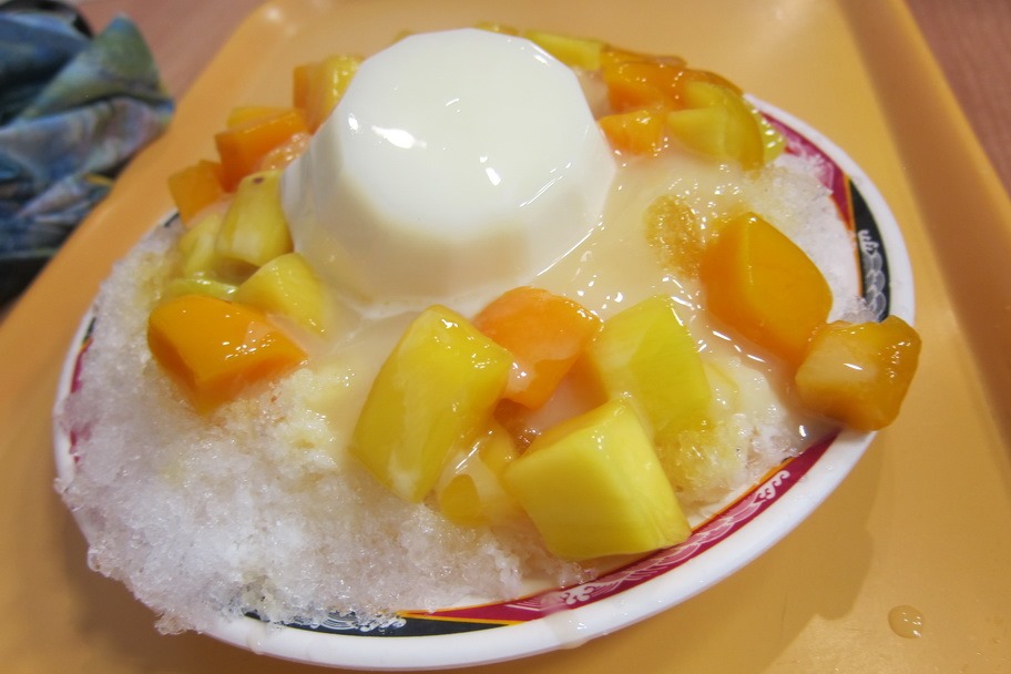 Taipei is hot. Tropical hot. So it’s probably no surprise that mango-shaved ice originated here. Your typical mango-shaved ice consists of shaved ice at the base, fresh chunks of mango, and milk pudding.
