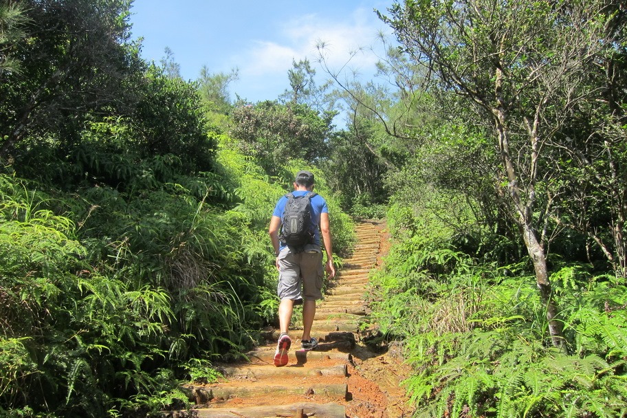 Even though it was hot enough to cook an egg outside, Mrs. Selfish and I were determined to find some short, scenic hikes. Fortunately, Green Island is full of sweeping vistas and accessible trails. Within minutes of leaving the prison, we parked at the North Eastern part of the island by Niutoy Hill.