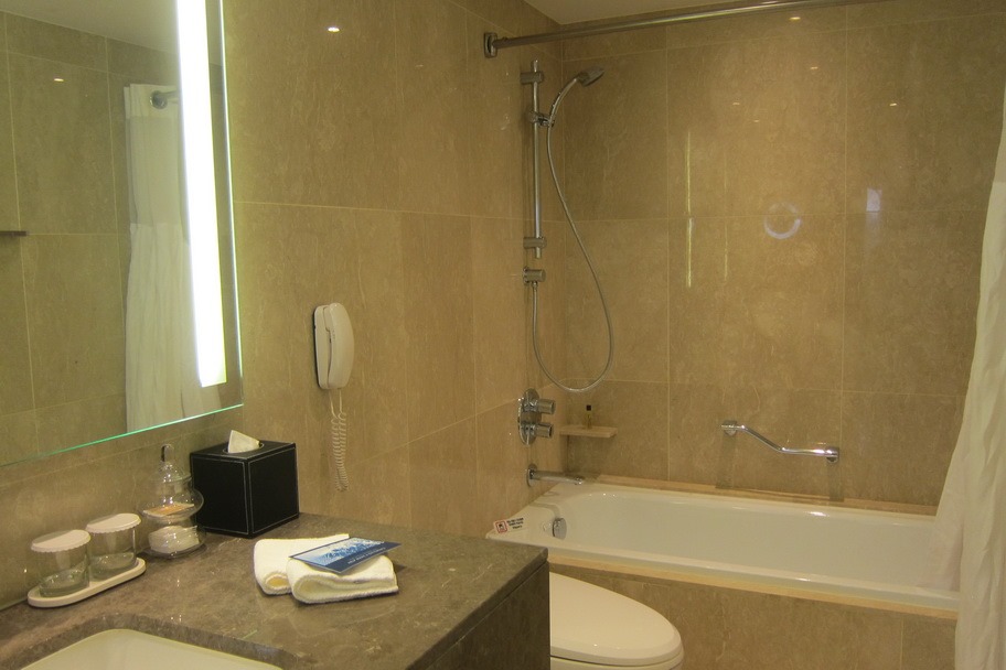 The bathroom came equipped with a tub and a stand alone shower (not pictured)and came with the standard Hilton shower amenities.