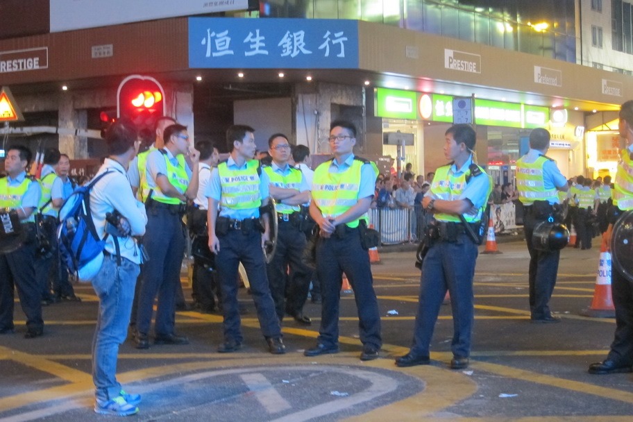 The protests were just ramping up for the evening, with the protesters out in full force. We witnessed a brief encounter between the protesters and the police, who decided to back off for the evening amidst a ton of applause. Fortunately, nothing got out of hand and we were able to take several pictures without incident.