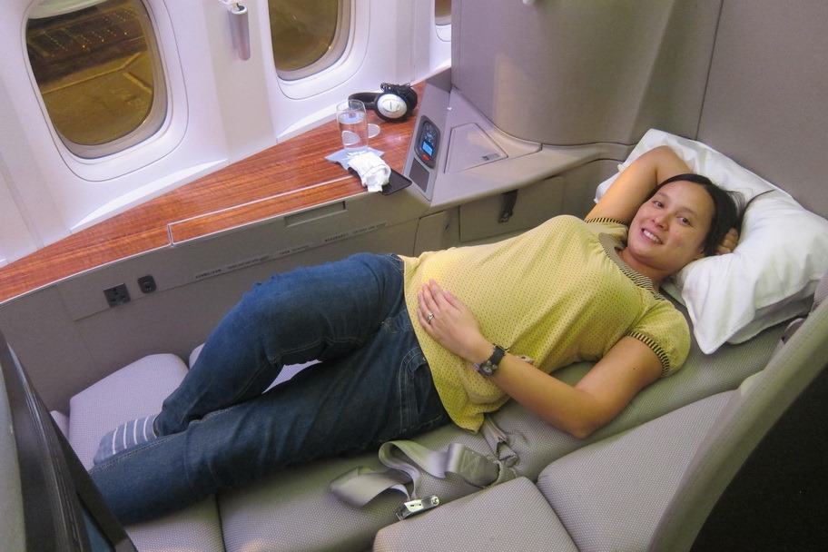The flight was incredibly restful, if a bit long. Service was impeccable, and Mrs. Selfish even managed to get a full 7 hours of sleep – a rare feat in the Selfish household! Our flight attendants were particularly attentive since she was noticeably pregnant, even managing to get her 3 pillows so she could sleep on her side like normal.