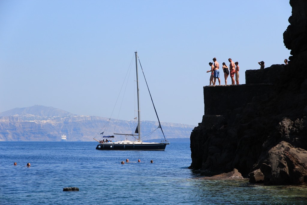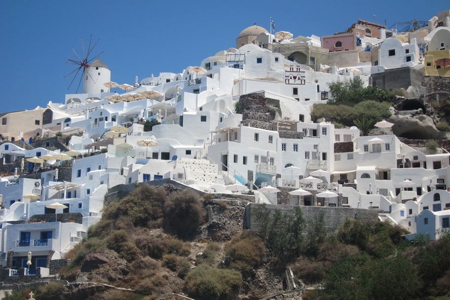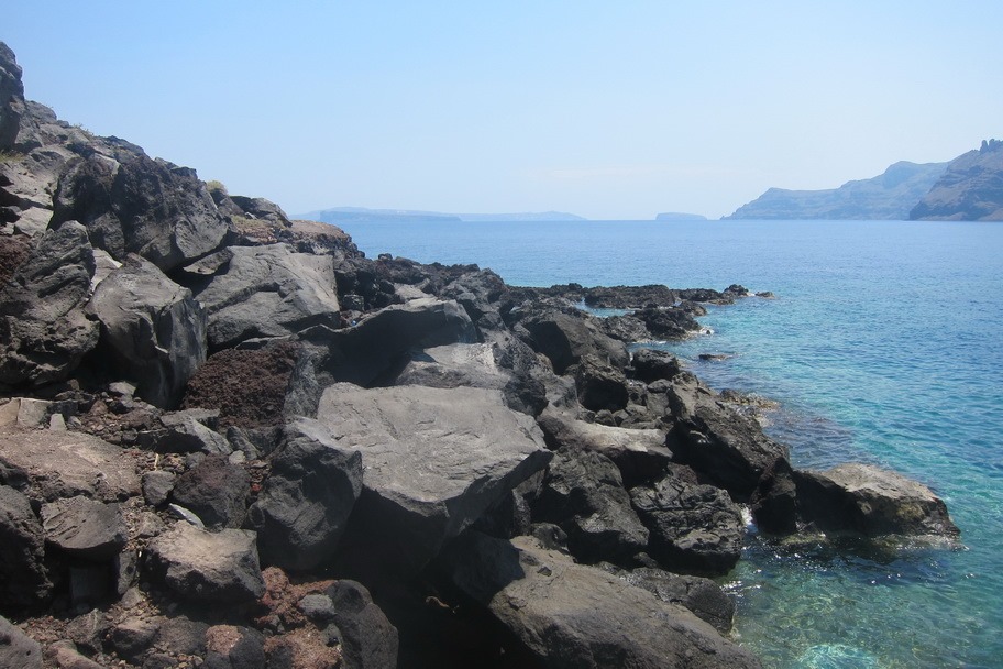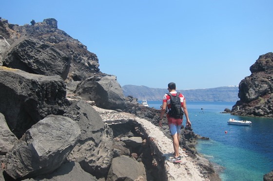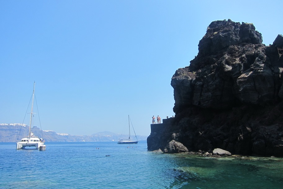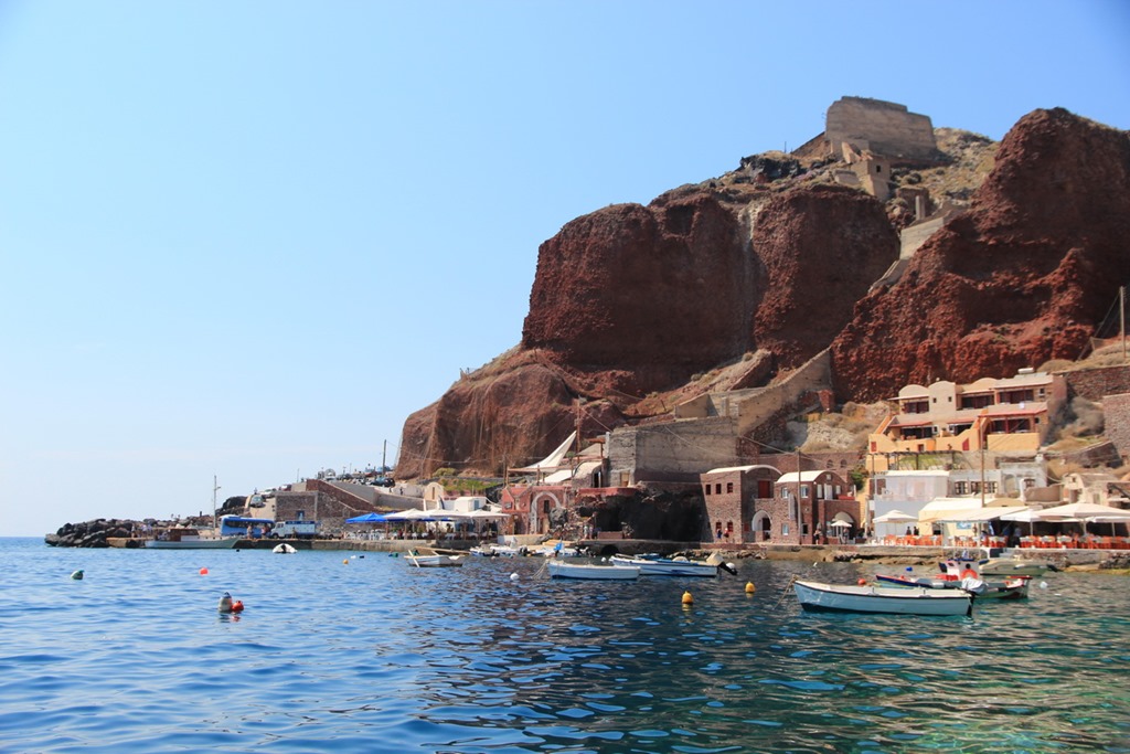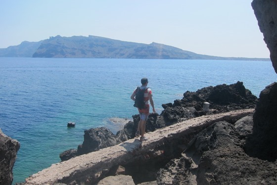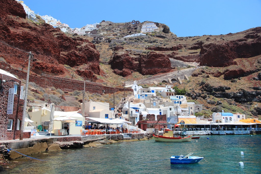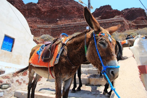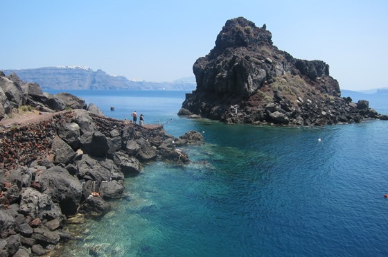 Starting right, Mr. Selfish and I had lunch at one of the restaurants right on the water. The breeze was wonderful, and best of all, there were hardly any of the cruise ship tourists around. I’m guessing that they were all up in Oia taking photos of the blue and white buildings and windmills and didn’t want to trek down the 260 steps.