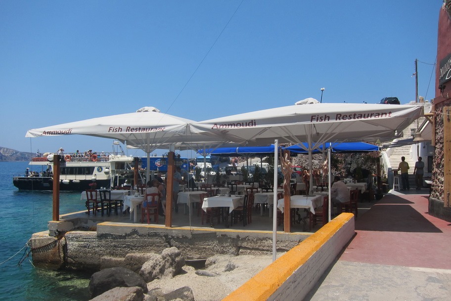 Located at the Western most part of Oia, the Amoudi Fish Tavern can be found right at sea level, which is always a good sign when one is looking for fresh seafood.