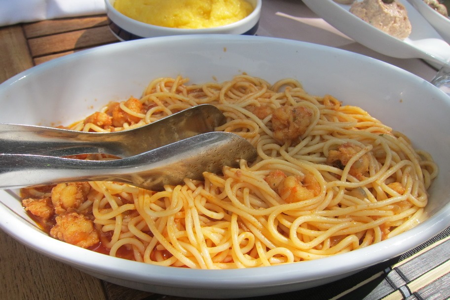 Unfortunately, the restaurant was VERY expensive. 750 kuna (which trade at 6.5 per $USD) for a kg of lobster, which is over $50 a lb! Instead we opted for fresh clams, scallop pasta and polenta.