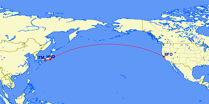 SFO – HND, ITM – HND – SFO for all you flyer nerds.