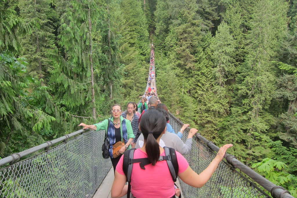 Crossing the Capilano Suspension Bridge in Vancouver.