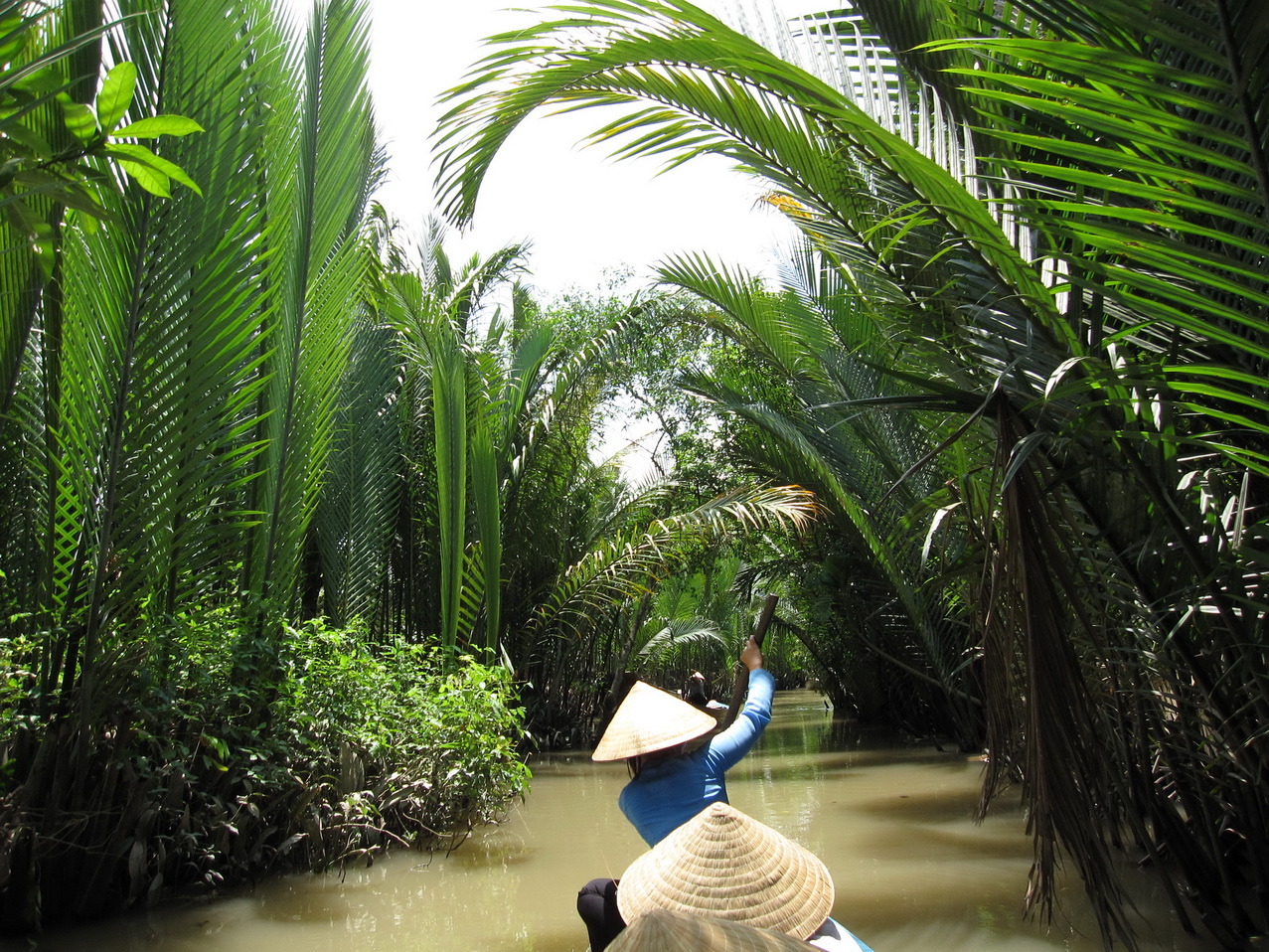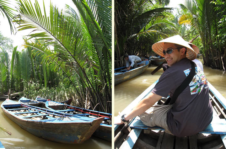 First, we went to the Mekong Delta, which is where the Mekong River approaches and empties into the sea through a network of streams. It was lovely but quite hot (as it tends to be in Saigon). We were given straw hats for the short canoe trip, which I found quaint but quickly discovered were mostly functional due to the scorching sun.