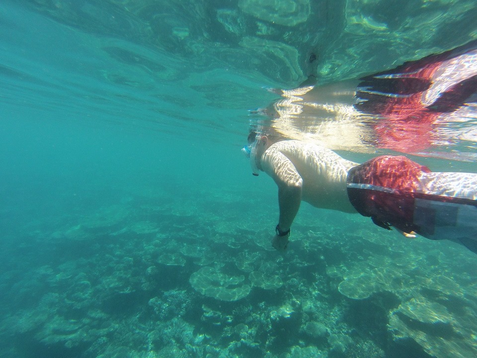 To get to the house reef, you should walk to Beach Villa #220 and start swimming straight out into the ocean. At that point, you’ll be swimming in between an opening in the reef. After a little while, there is a huge 60 feet drop, and you can see lots of marine life.