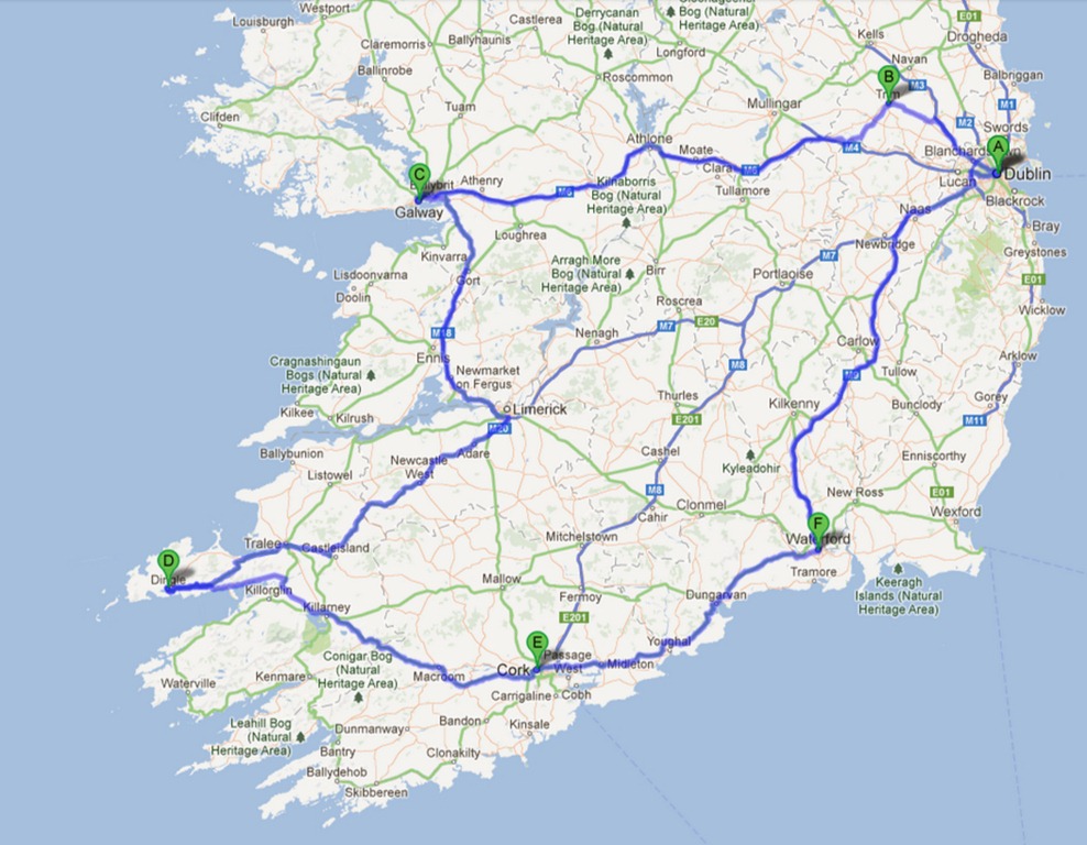 Mr. Selfish and I started our Selfish Year trip in Ireland. We spent a week driving through the Republic of Ireland, which was very ambitious. We landed in Dublin, drove to Trim, Galway, Dingle, Cork, and Waterford, and then spent two nights in Dublin.